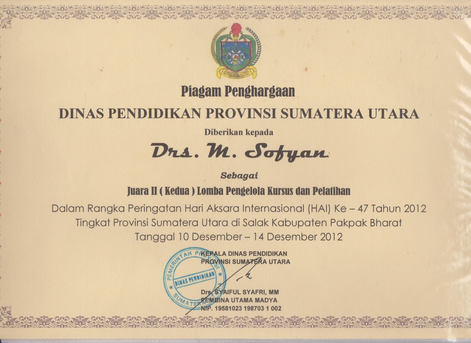 Juara II-Lomba Pengelola LKP Tkt Sumut