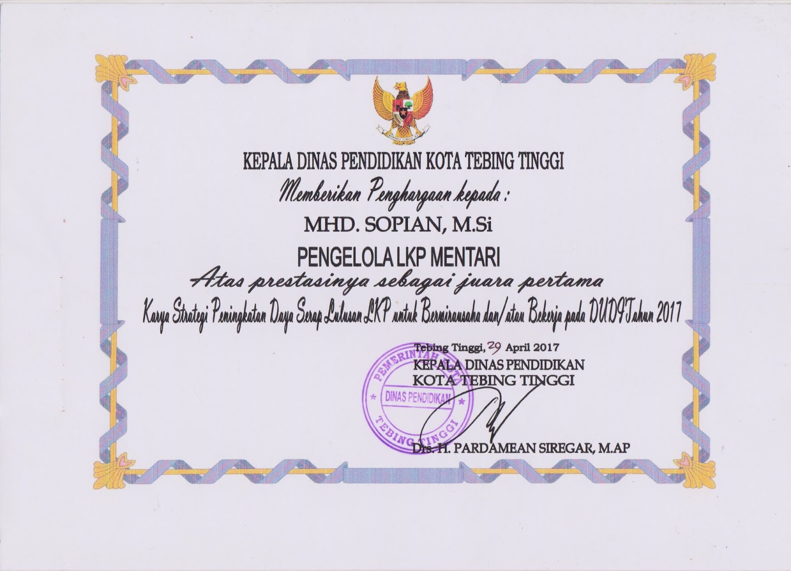 Juara I-Lomba Pengelola LKP Tkt Kota